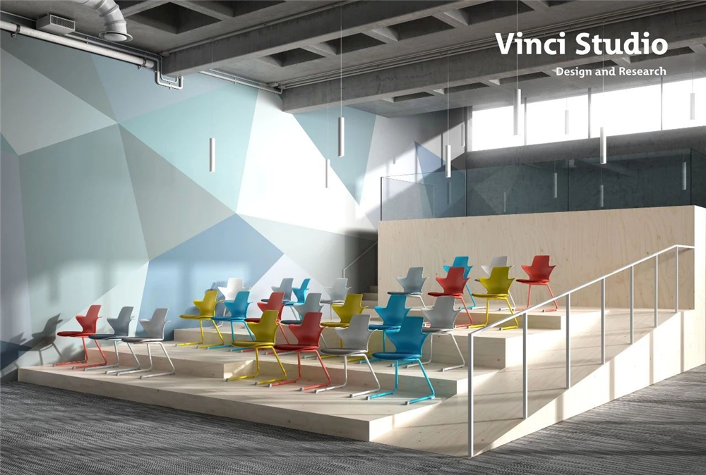 為了營造輕松活躍的學習氛圍,緩解高年級的學生的學習壓力。Vinci studio選擇了飽和度偏低但顏色明麗的色卡作為座椅的顏色選擇。一方面營造了輕快的氛圍,另一方面避免了明麗顏色過于低齡的問題。
