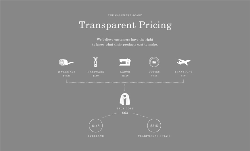 例如,Everlane在整個價值鏈相關的成本上是透明的,消費者可以自己決定要支付的總成本中的多少。